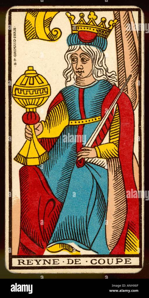 In our work with the Queen of Cups, we are primarily bringing her into relationship with the 7th Arcanum, The Chariot. In terms of practice, this is related to the downward stream from the left side of the head (Warmth) to the left shoulder (Activity), the quality of Self Mastery, and the Hebrew letter Zayin. It is also related to the 7th portion of the Grail Knight’s Practice: “Forgive us our trespasses as we forgive those who trespass against us”, specifically the 1st level of trespass (Doubt) which is healed by the first level of communion (Wine) and the first healing miracle (the Changing of Water into Wine).