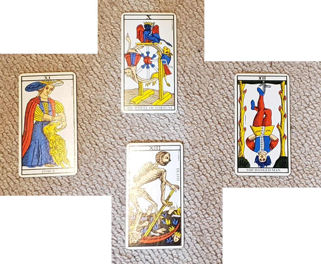 – Wheel of Fortune is a mixture of elements. With Force, a pure element separates itself out from this mixture. The Hanged Man is what is left, and Death must be removed from the Hanged Man in order to rescue him.