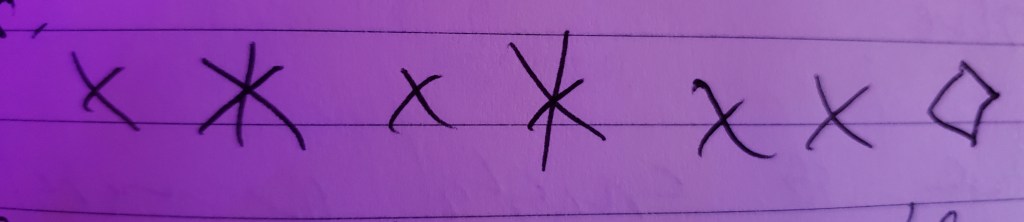 The center is riddled with little diamonds. And there is no weird imperfection anymore, as there was in the Seven. It is an intricate enough pattern that it isn’t quite recognisable as a pattern. It’s hard to sum it up, e.g. “skip two, go under one.”