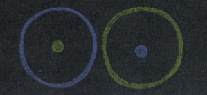 and on the following morning, you have this picture before you: I am in God. They are one and the same, the upper and the lower figure. And now you must understand: Here you have a circle (yellow); here you have a point (blue). It doesn’t look like that in the evening, but in the morning the truth of it comes to light. And in the morning you have to think: Here is a circle (blue); here is a point (yellow). Yes, you have to understand that a circle is a point, and a point a circle. You have to acquire a deep, inner understanding of this fact.