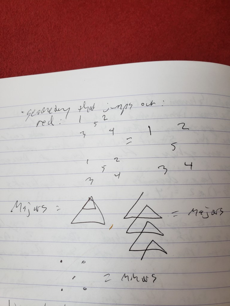 It becomes ever clearer that the overall geometry of the Major Arcana is that of a large Triangle, with a smaller triangle within: a Trinity, with a Fourth emerging (this is YHVH). Whereas the geometry we keep running into again and again in the Minor Arcana is a Quaternary with a Fifth emerging (this is YHShVH).