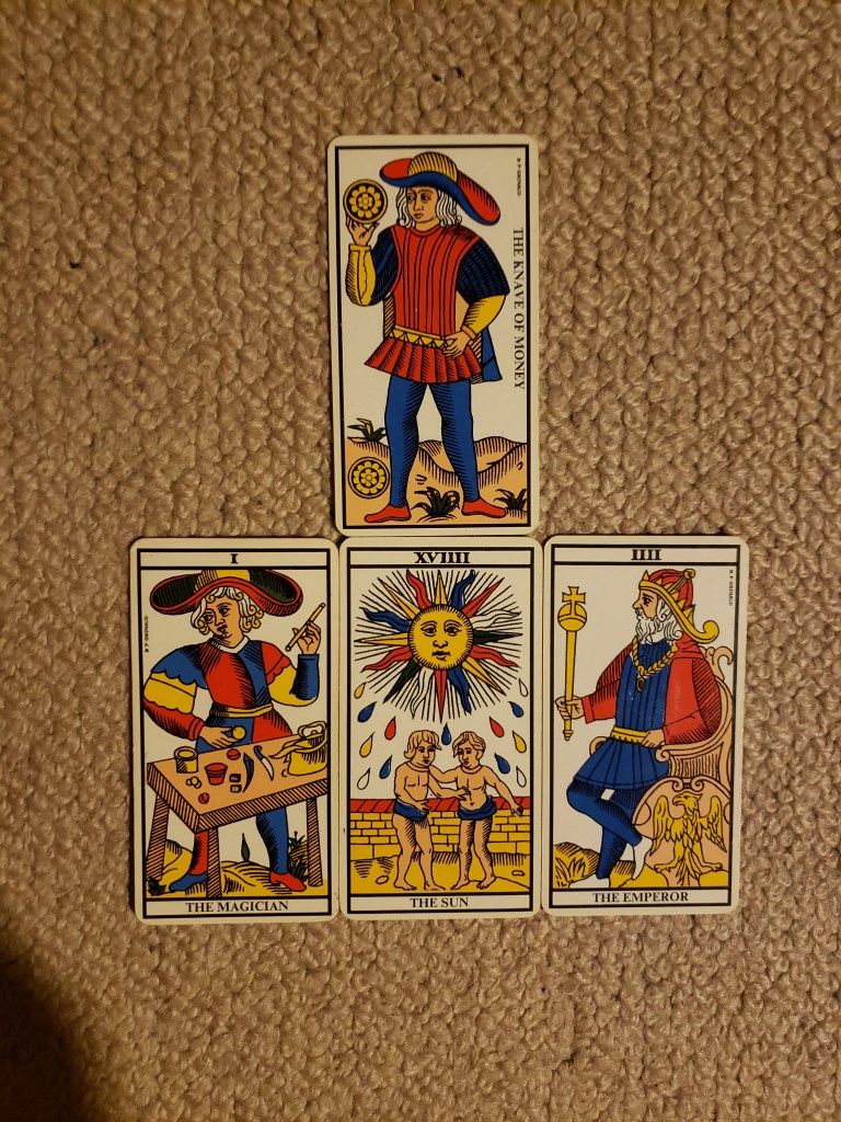 – Wow, if we re-arrange the four Arcana in question (Magician, Emperor, Sun, and Knave):