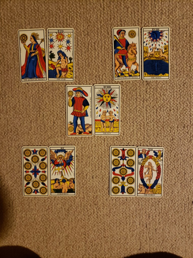 – Going back to the Knave as Shin. When we look at the five Major Arcana that have been guiding us through the Coins, we see: