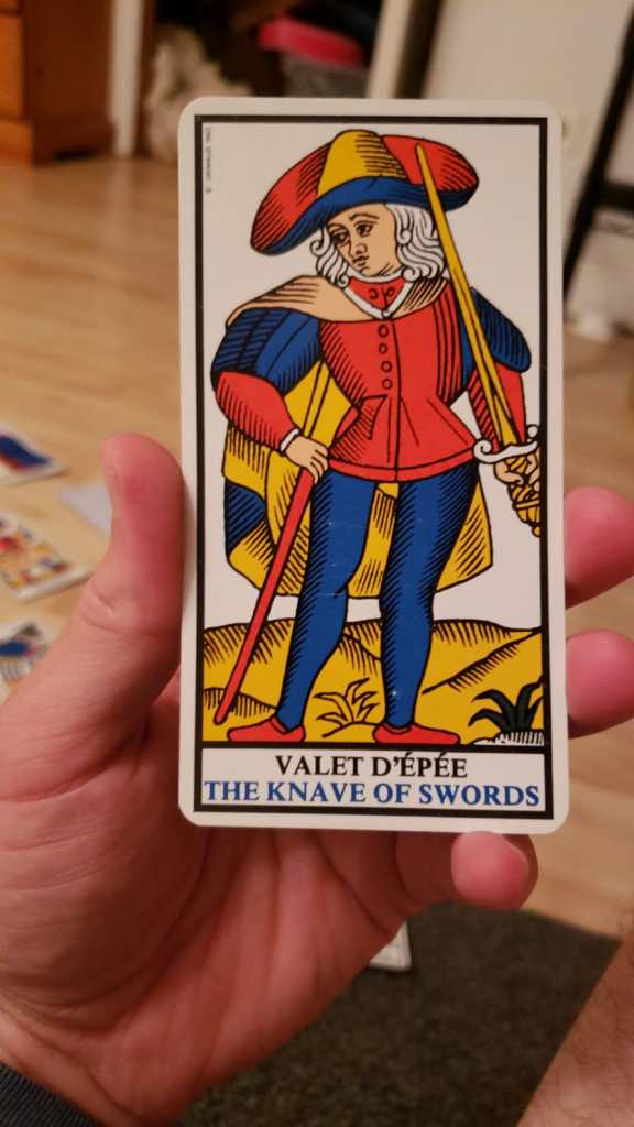 The Knave of Swords is more like he’s doing some kind of dividing act, and he’s the initial stage of the presentation of that, as the melothesia. A fully presented beginning rather than a hidden one.