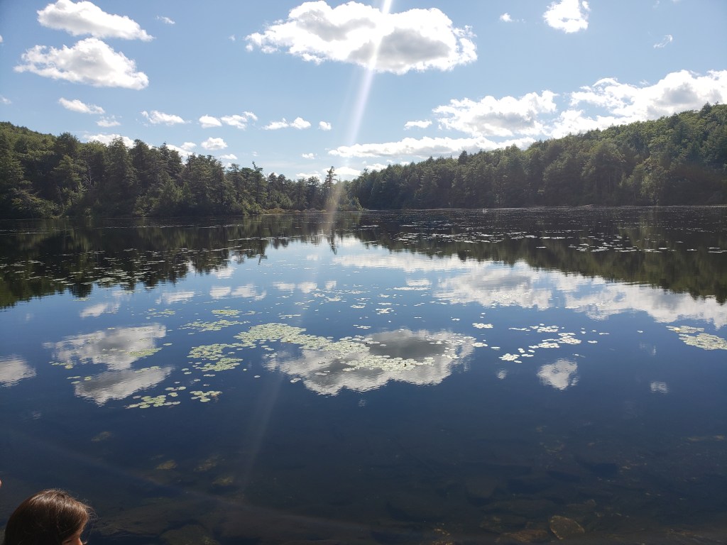 – The other day, Joel and his family went to this incredibly idyllic place called Guilder Pond in Massachusetts…a kind of mountain lake…with intersecting ripples…a long, large echo…many different types of lily pads and flowers…dragonflies…massive rhododendrons…teeming water snakes in blueberry bushes by the water’s edge…the swirling rock that you can feel was once flowing lava…the reflection of the sun on the pond then glinting onto and dappling the brush behind…