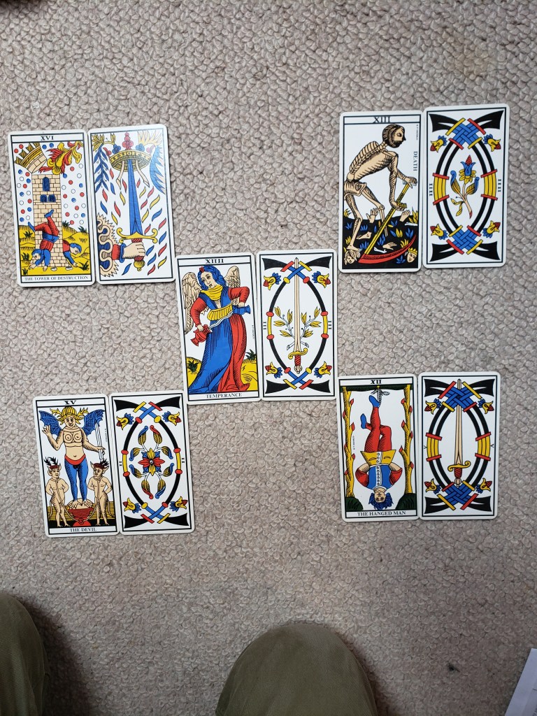 In this path of the Swords, after the Fool we were led into this no-man’s land of Moon, Devil, Hanged Man.