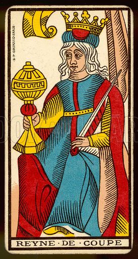 The King of Swords, a fully rejuvenated powerful being. Queen of Cups—a disply of self-sacrifice that only leads to more life. Like the trunk stripped of the branches. This life cannot die or wither, cannot be separated from the source. Its death only leads to more life.