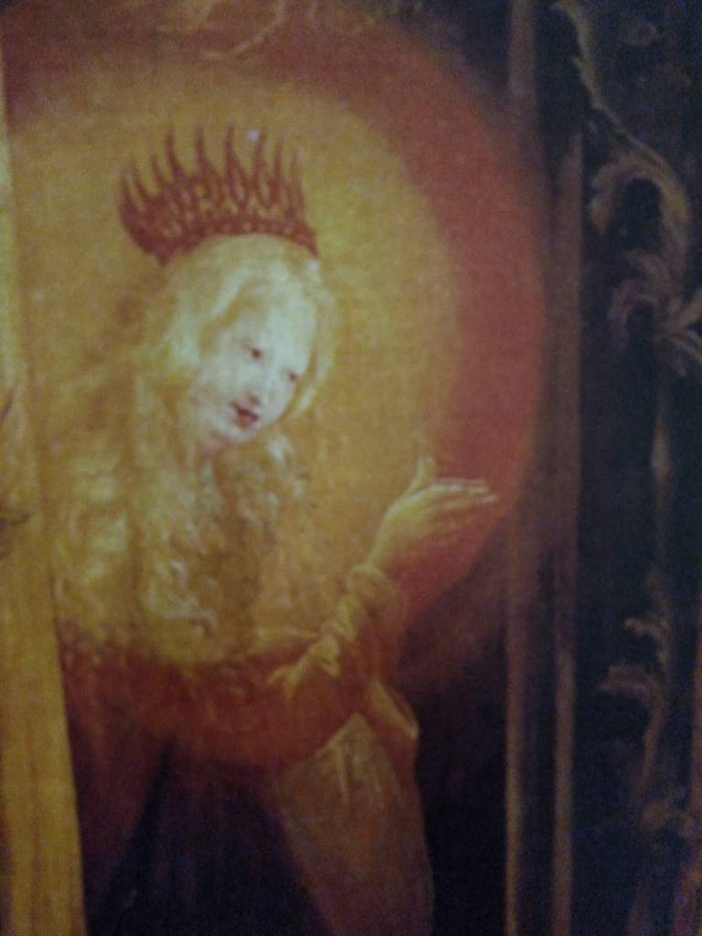 Sharing the image from the Eisenheim Altar from Natalia, which is a Sophianic figure from the second panel of the second position of Grunewald’s Isenheim Altarpiece—some kind of elemental/Angelic figure. She saw a similarity between her crown and the crown of the Queen of Swords. We can investigate more who this figure is supposed to be.