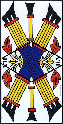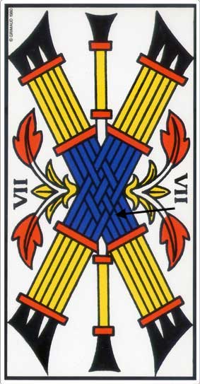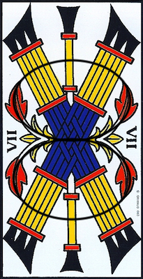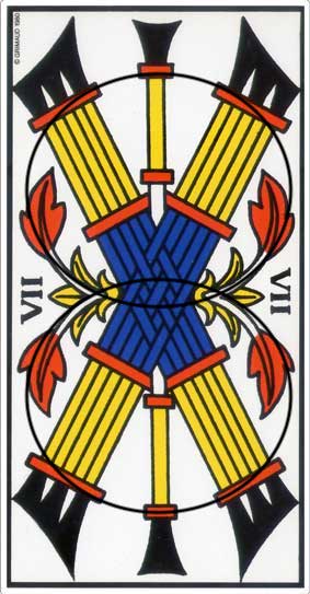 There is a metamorphosis from the Six to the Seven of Batons, but it’s like something is missing.