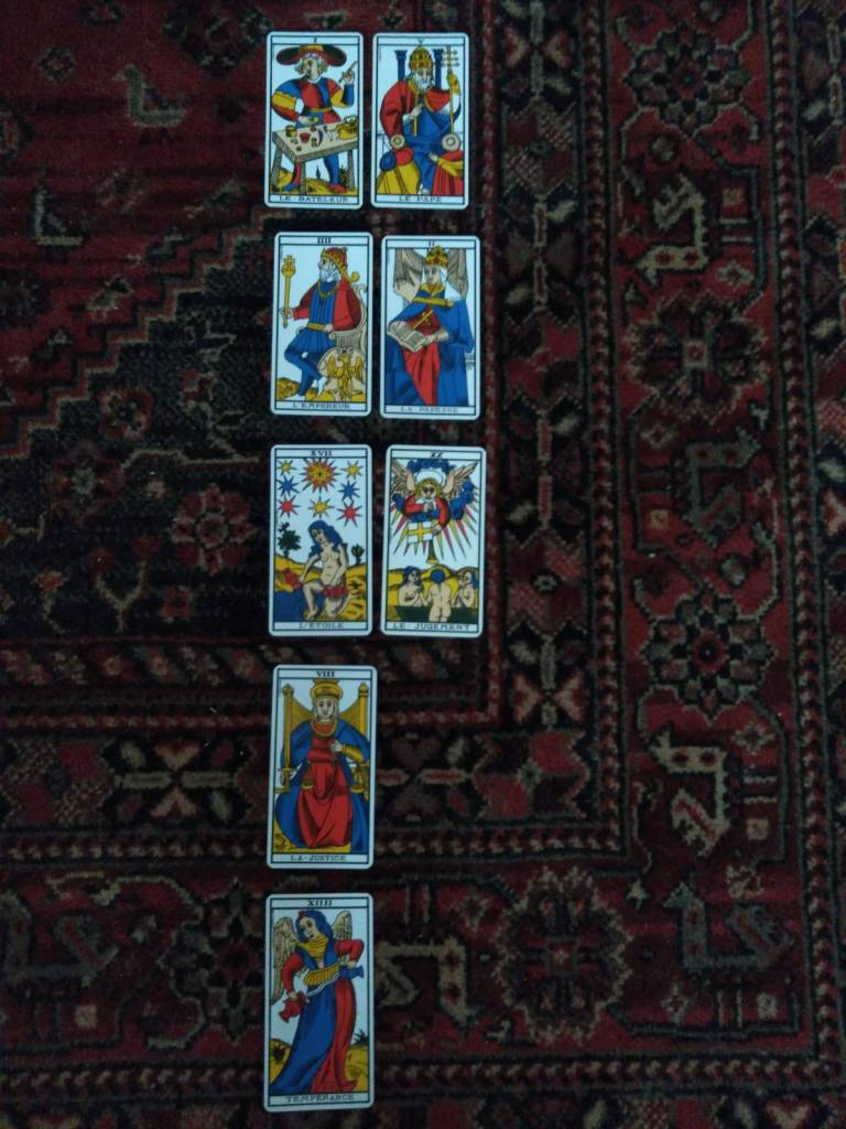 Natalia feels maybe the Hanged Man is the first part of the 9th, and the Fool the second part, “Rejoice and be exceedingly glad.”