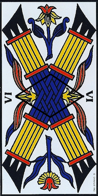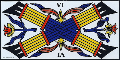 Well, we certainly didn’t expect the Suit of Batons to be the one that stands alone…then we get to the Six in the Fourth Suit.