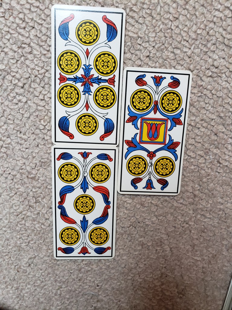 – We assumed that the white pearl in the Five of Coins was in the lower portion, but technically it could be upper. It isn’t clear which orientation is correct in the Five.