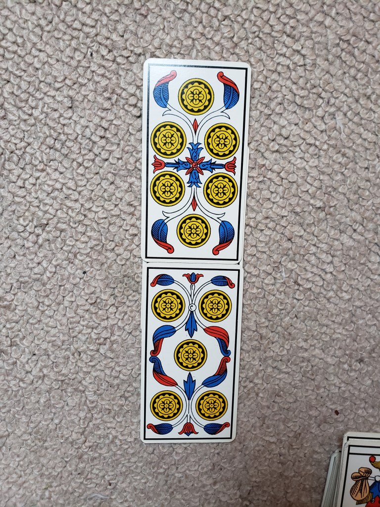 – Comparing the Six of Coins to The Lover (another Six), there doesn’t seem to be any connection at all. But what if we look at the sequence: Lover, Devil (15=6), Six of Coins. Do we see a degradation? A movement from Temptation (Lover) to Submission (Devil) to Imprisonment (Six of Coins, like a cage).