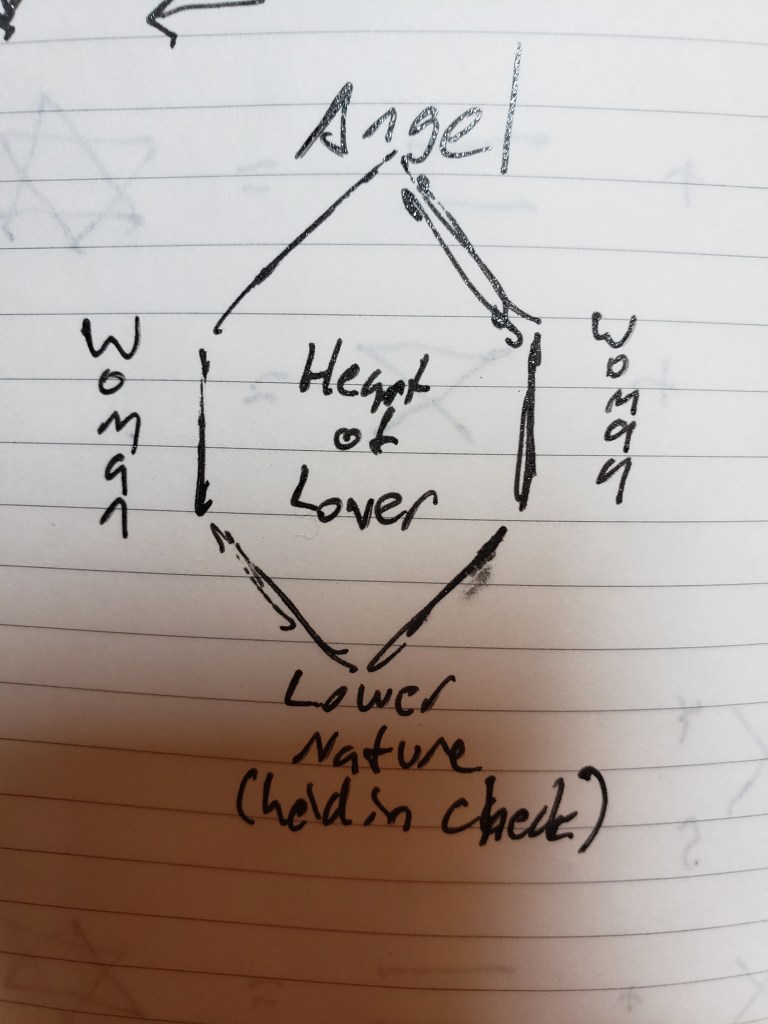 – The cube; the Sephiroth; the unicursal hexagram; the compass and ruler. But also, the Seal of Solomon, two interpenetrating triangles. This is the Grail symbol. It is Christ and Sophia, the Illuminated Trinity.