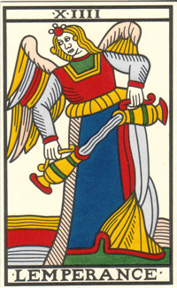 – Temperance is like the inverse of Death. Bone dry vs flowing. Scattered limbs become wings. Flowing Life rather than Death.